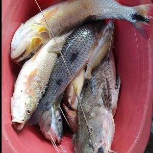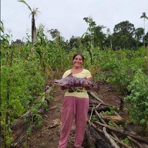 Image 4, 5 : Roxana’s mother, with her fish, in the background a small orchard of tomato, corn and yucca. The second photo is the fish from the Mishahua River, the main food of the families in the settlement._ Image 6 : the port of the Alto Mishagua community, it is observed that the boats run on motor and gasoline