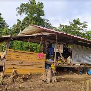 The families’ homes are precarious, most of them fenced off with burlap, corrugated roofing, and wood material for the columns or skeletons of the houses.